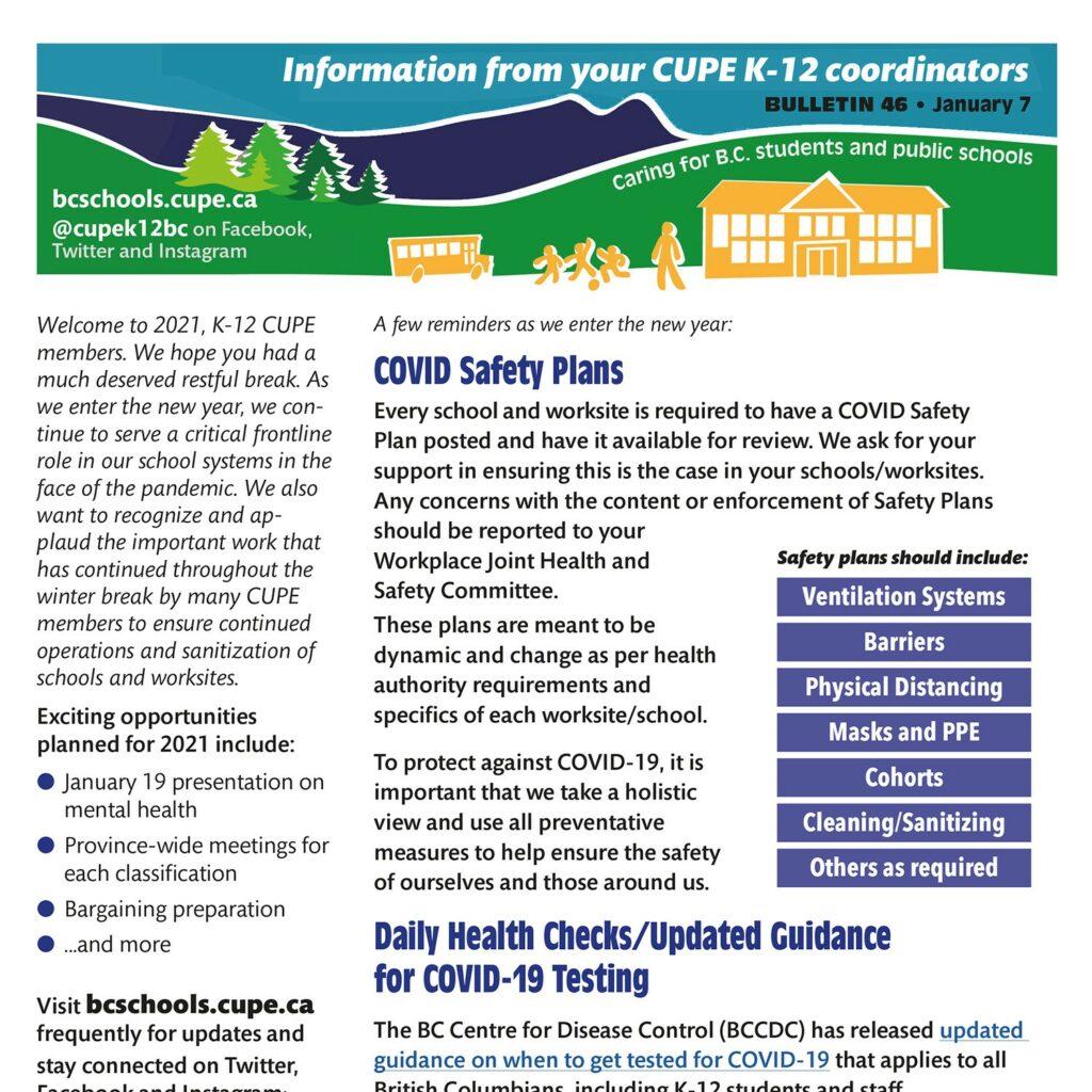 Welcome to 2021, K-12 CUPE members. We hope you had a much deserved restful break. As we enter the new year, we continue to serve a critical frontline role in our school systems in the face of the pandemic. We also want to recognize and applaud the important work that has continued throughout the winter […]